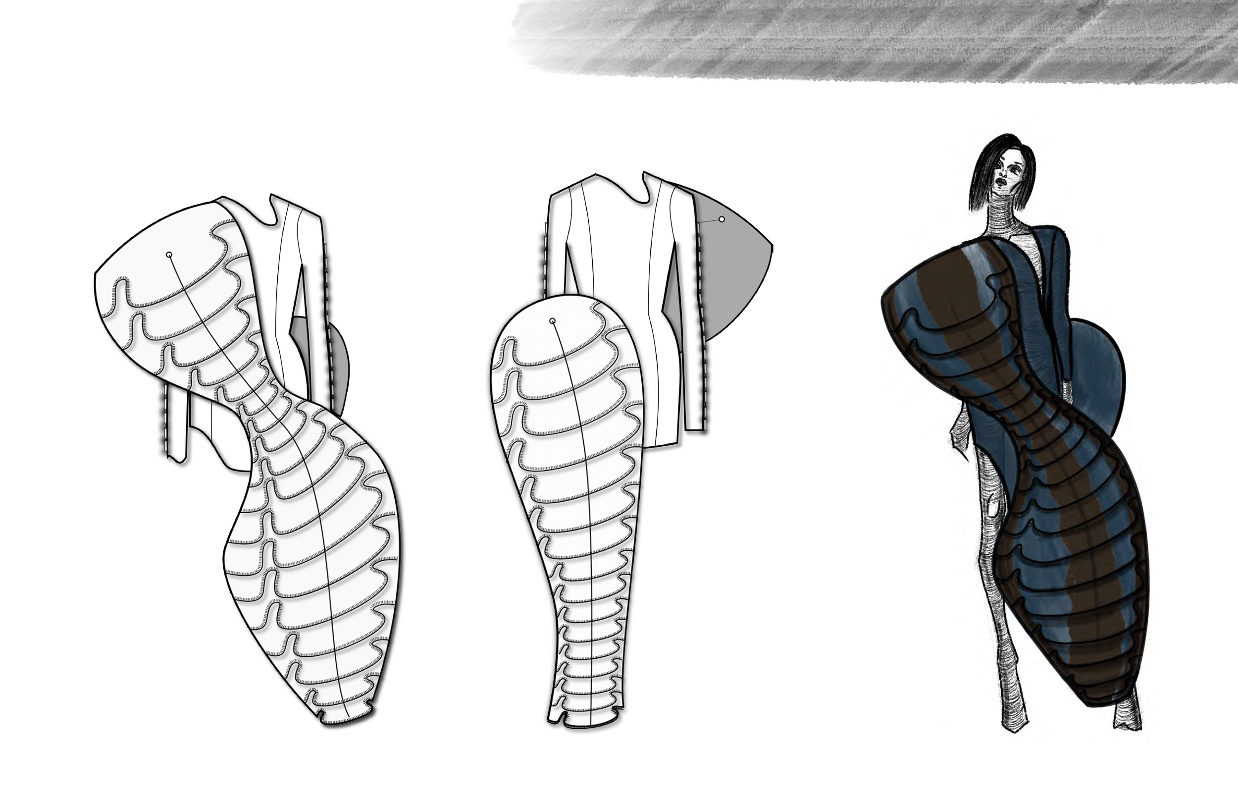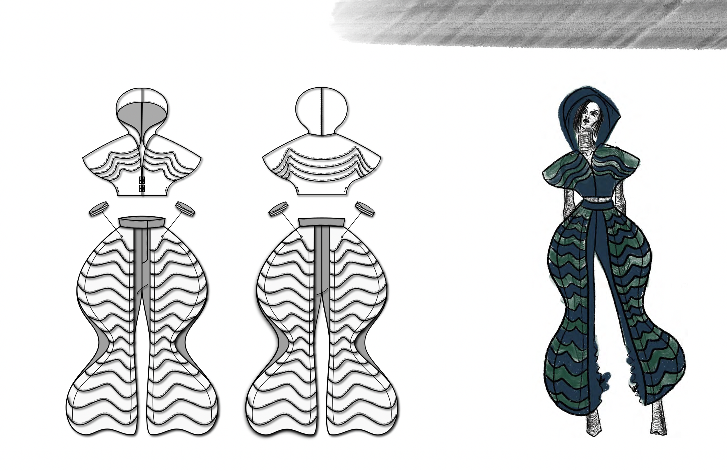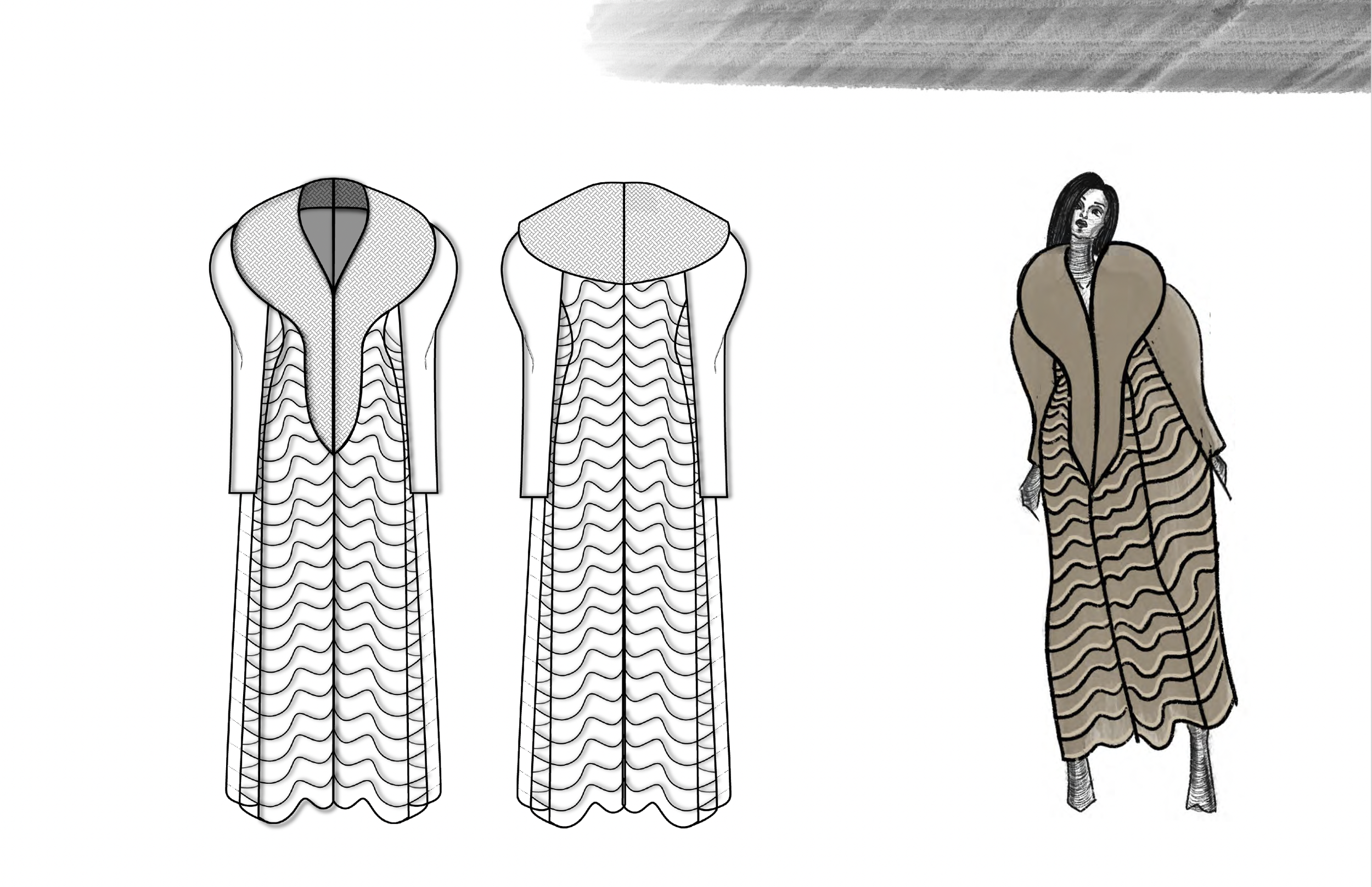 ‘Maya’ is a collection that weaves together the allure of movement, motion imagery, illusionist mechanics, spectatorship, perception, and shadow-like fluid forms. The pieces in the collection aim to provide an illusion-like experience, captivating the viewers’ gaze with the fluid movements observed within the clothes when worn. Exploring a dual cause-and-effect relationship, we delve into how the clothes interact with the movements of the human body and the responses they evoke by the visual stimulation of movement within the garments.